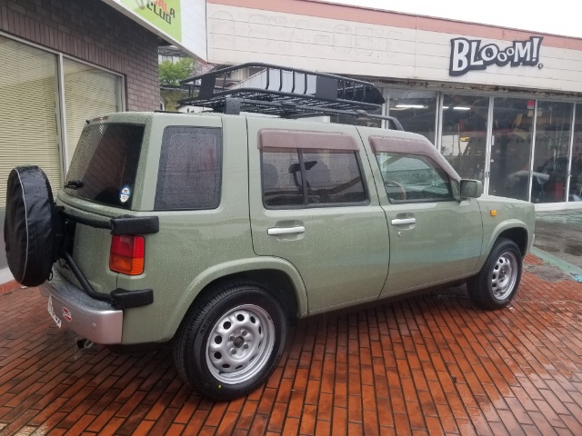 お待たせしておりましたYさんラシーン納車!後期モデルサンドベージュをベースに純正カラーのシーダーグリーンにカスタムペイント!内装はライトウッドパッケージ装着。ツインミラードラレコ・キャンパーキャリアキット・前後クリアランソナーも装着いたしました!